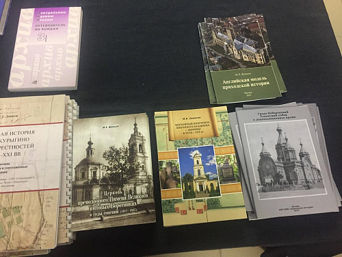 Денисов М.Е. также представил свои книги по краеведению и написанию приходских историй, которые можно было приобрести на пожертвование.