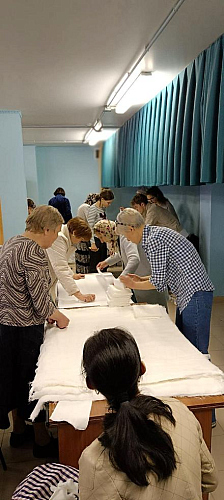По окончанию концерта, прихожане приняли участие в подготовке медикаментов и бинтов для участников СВО, приобретенных на средства полученные с Пасхальной благотворительной ярмарки.