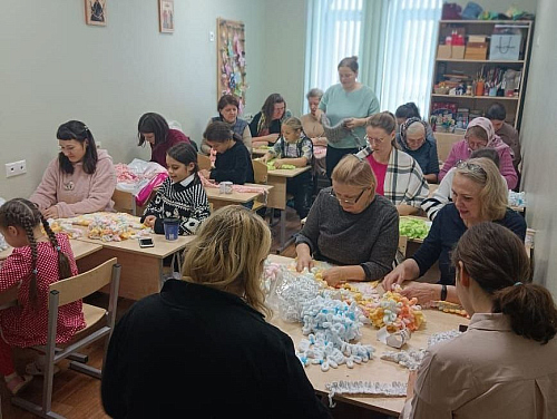 25 ноября 2023 года в храме Всех Святых в земле Российской просиявших в Черёмушках прошёл совместный мастер класс с прихожанами и воспитанниками Воскресной школы по вязанию пледиков для недоношенных детей, которые в последствии будут переданы через фонд "Право на чудо" адресатам.