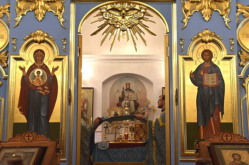 После сугубой ектении протоиерей Николай Карасев вознес молитву, читаемую во время распространения вредоносного поветрия.