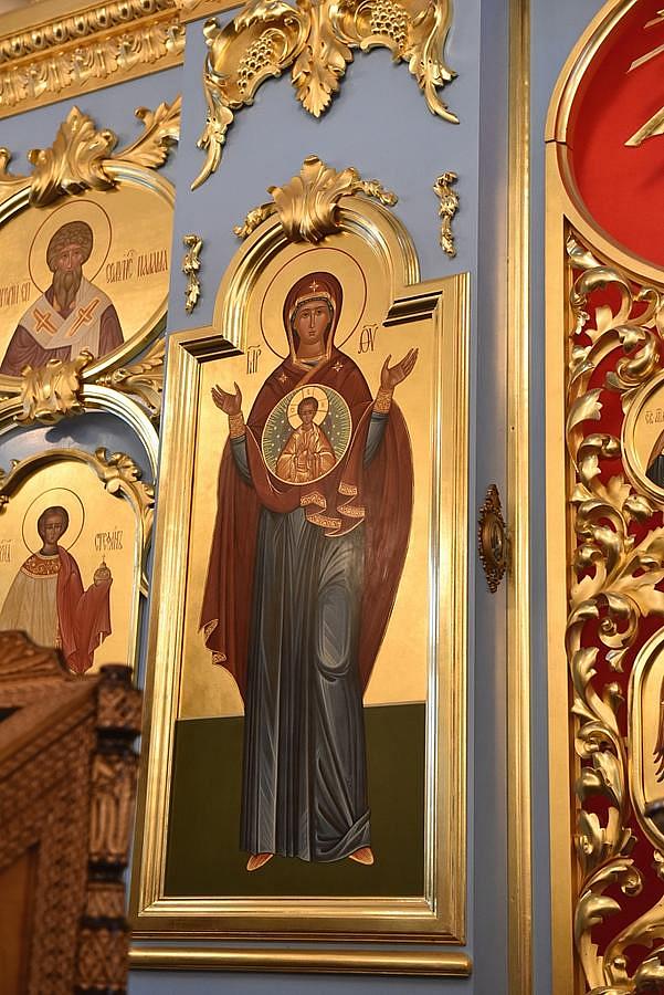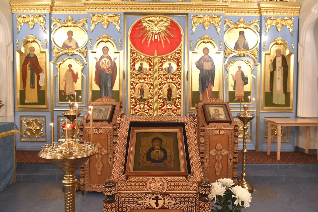 По окончании Богослужения духовенство и молящиеся совершили славление перед праздничной иконой Богоматери.