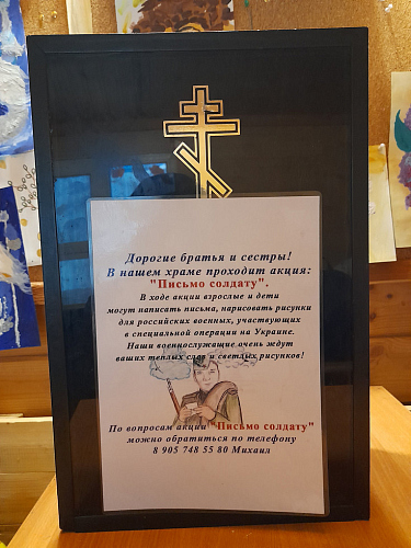 8 декабря 2024 года, в Неделю 24-ю по Пятидесятнице, отдания праздника Введения во Храм Пресвятой Богородицы, в Воскресной школе храма святых праведных Симеона Богоприимца и Анны пророчицы в Черемушках прошла очередная акция «Письмо солдату».