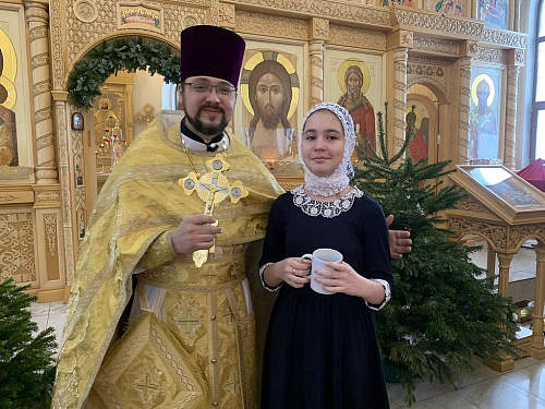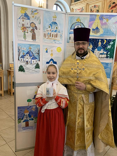 Настоятель храма иерей Илия Власов торжественно вручил каждому ребенку сувенирную кружку с изображением предложенного на конкурс собственного рисунка.