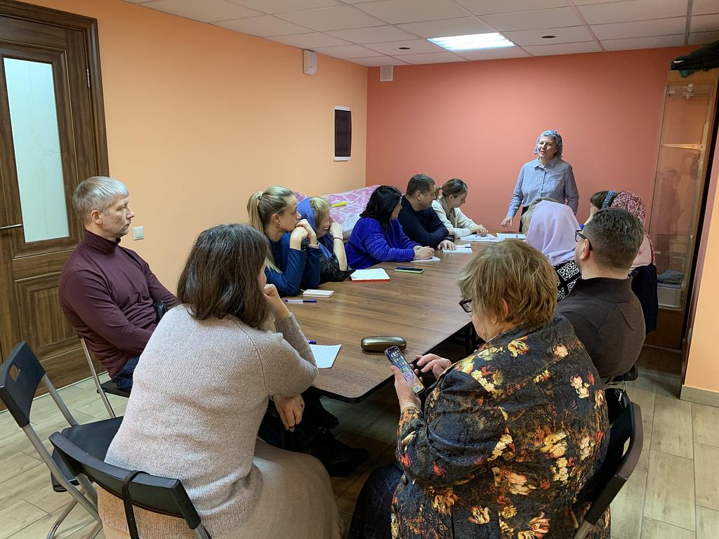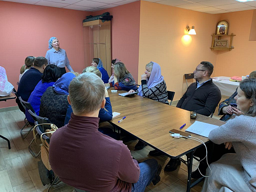 Первое вводное занятие в формате беседы провела Кузнецова Светлана Анатольевна, преподаватель Воскресной школы по богословию, миссионер-катехизатор.