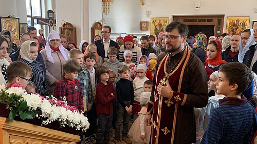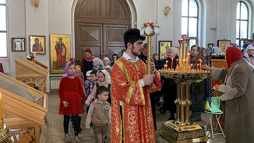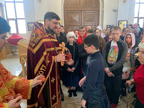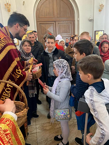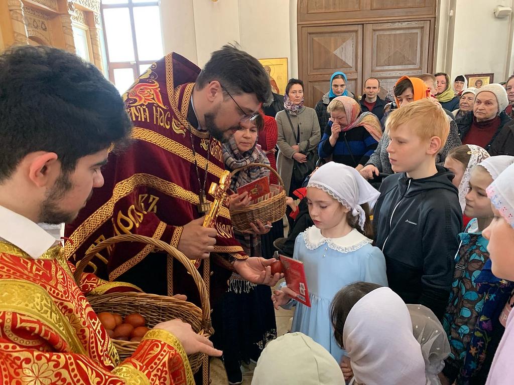 Настоятель храма иерей Илия Власов поздравил всех прихожан со светлым праздником Пасхи и вручил всем детям пасхальные подарки.