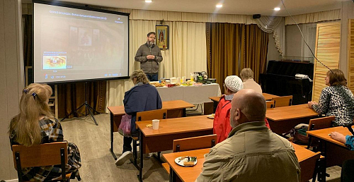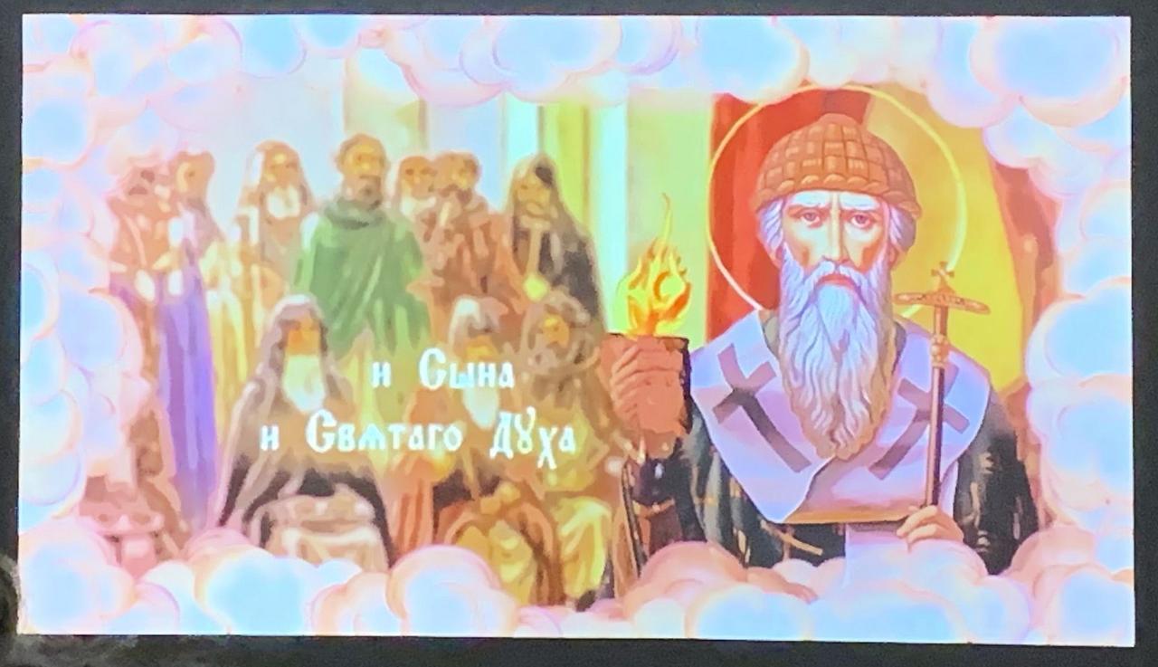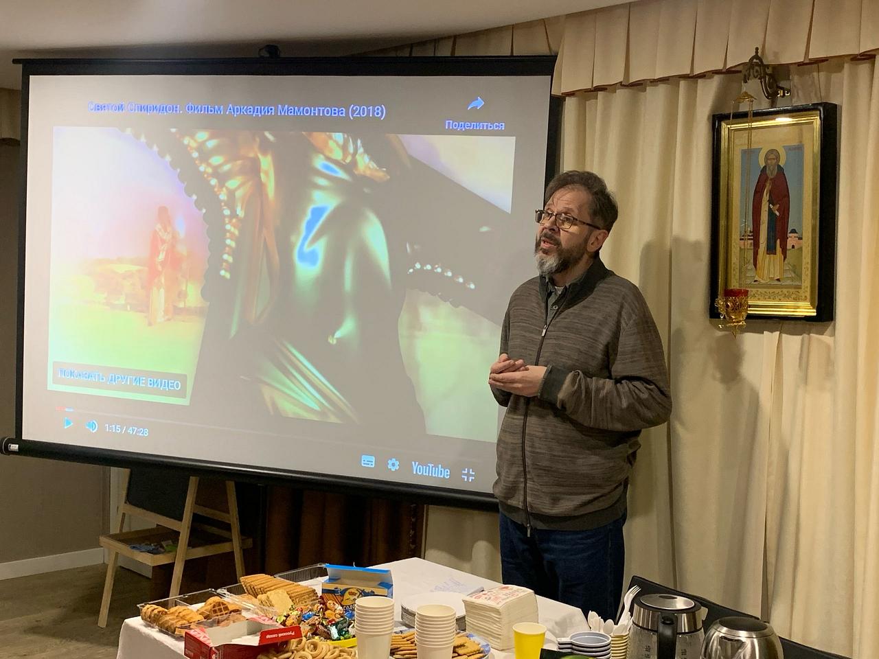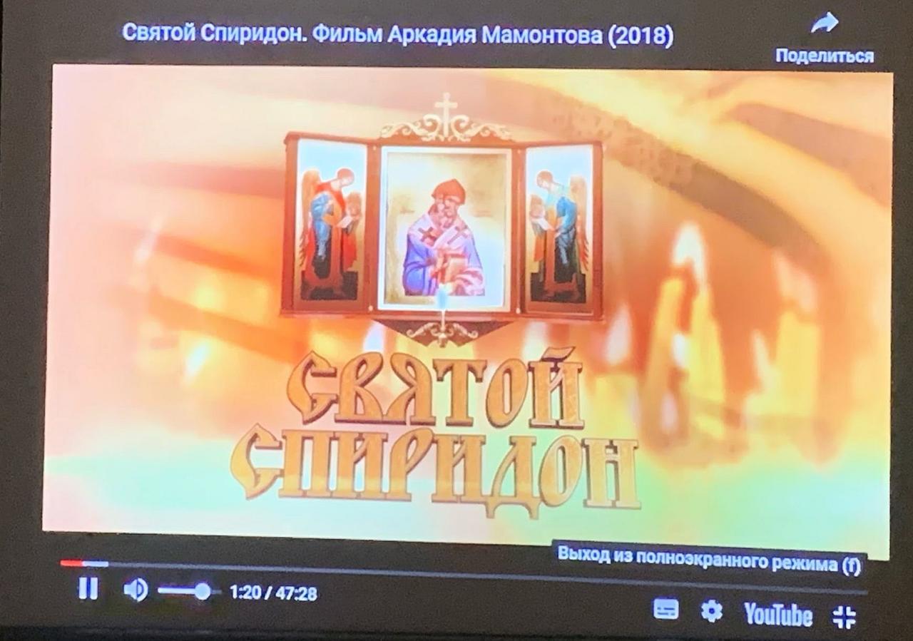 Перед просмотром фильма выступил Мухин Владимир Викторович, студент Российского Православного Университета святого Иоанна Богослова, который подготовил доклад о жизни и чудесах Святителя Спиридона Тримифунтского.