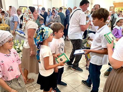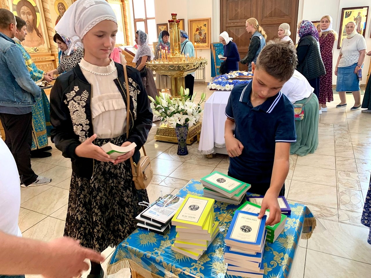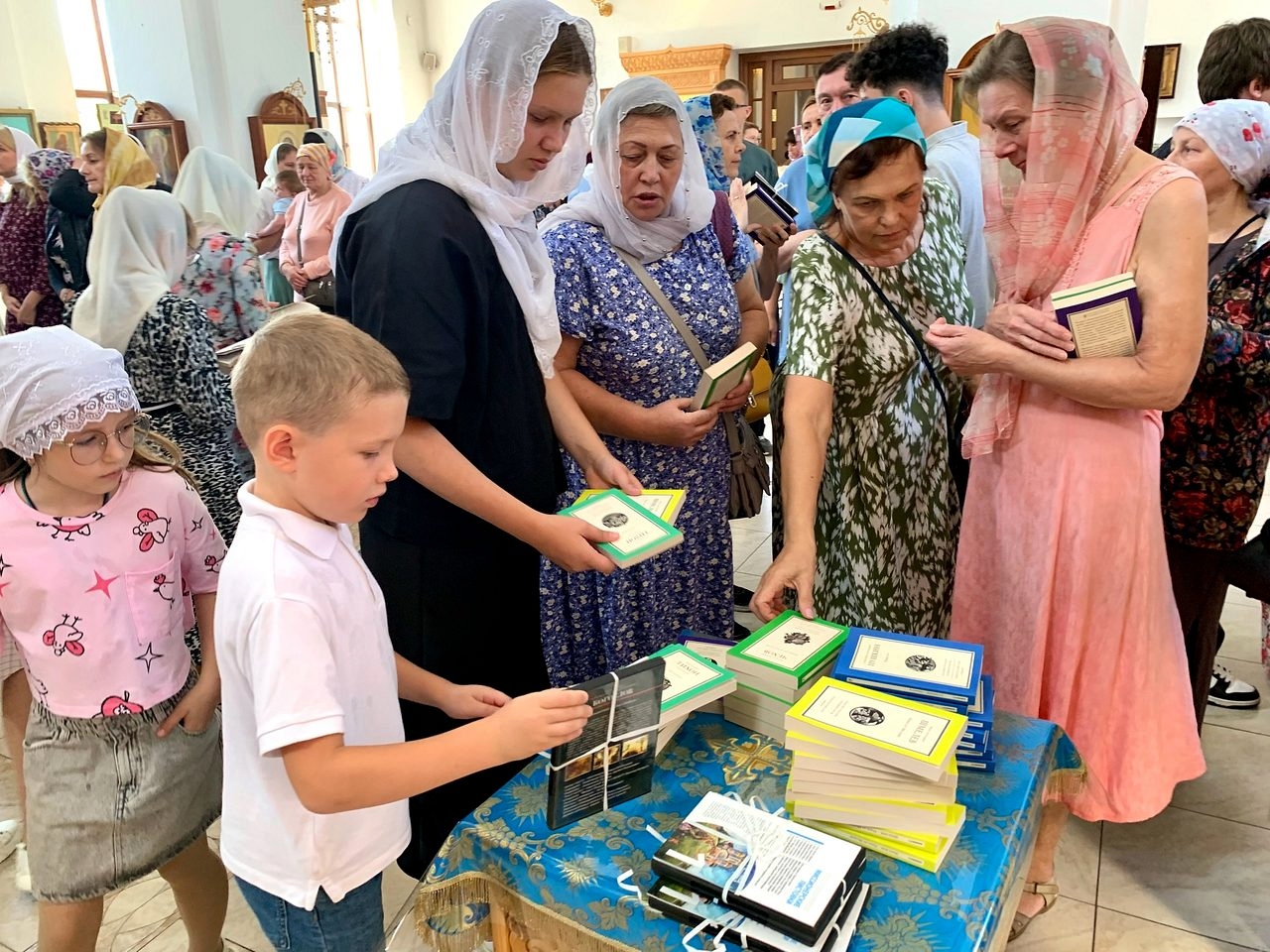После молебна, дети из Воскресной школы устроили просветительскую акцию, повещённую Дню Знаний. Ученики раздавали всем прихожанам храма книги классиков русской художественной литературы, миссионерские православные листовки и диски.