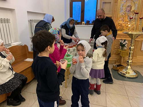 По окончании Божественной Литургии настоятель храма иерей Илия Власов обратился к учащимся, родителям и всем прихожанам с напутственным словом, отметив важность совместного участия родителей и детей в службе и «семейной» подготовке к Святому Причастию.