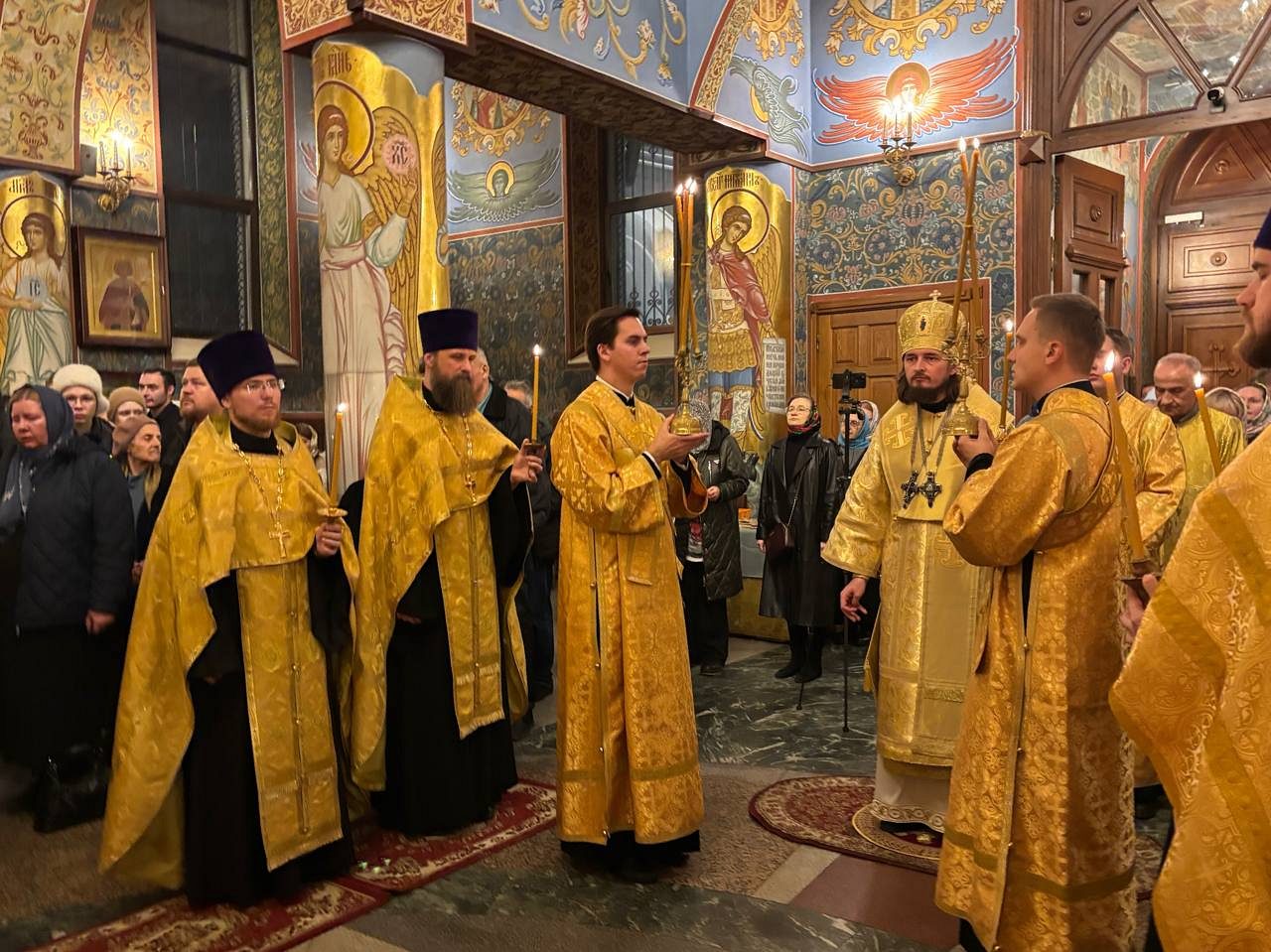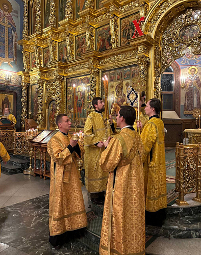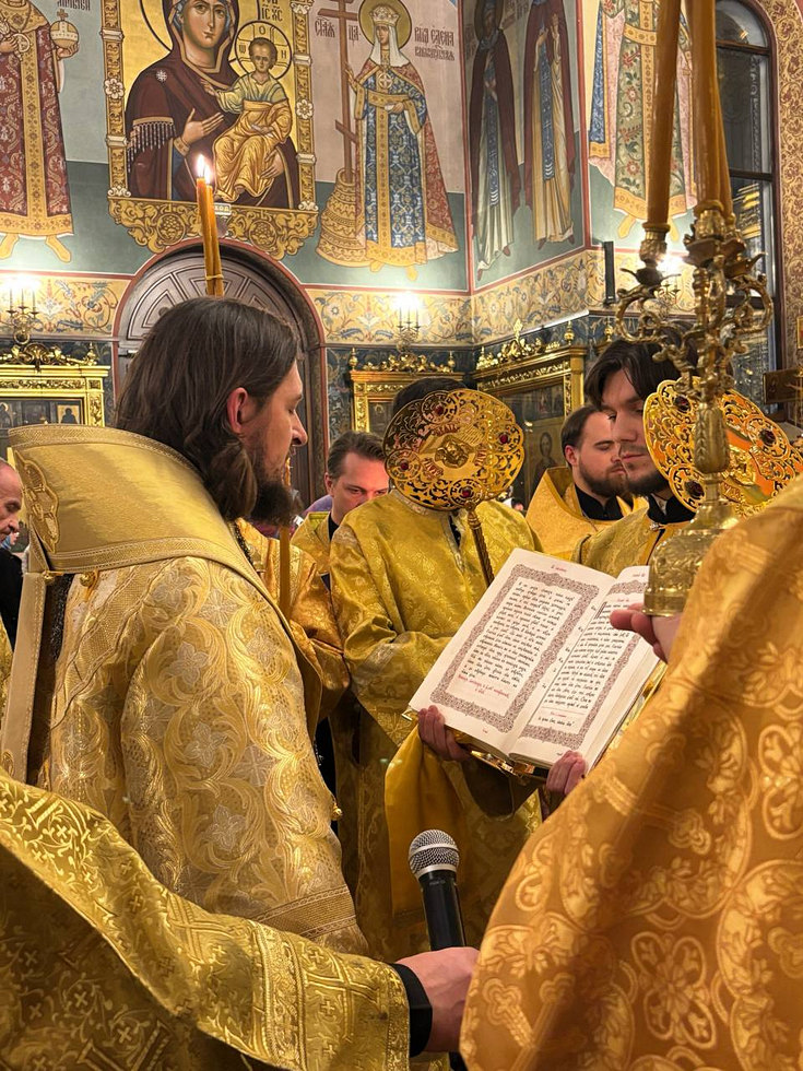За богослужением пел мужской хор храма преподобной Евфросинии Московской (регент Даниил Кузин). После чтения Евангелия Воскресную песнь («Воскресение Христово видевше...») соборно исполнили все присутствующие.