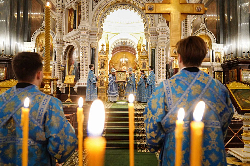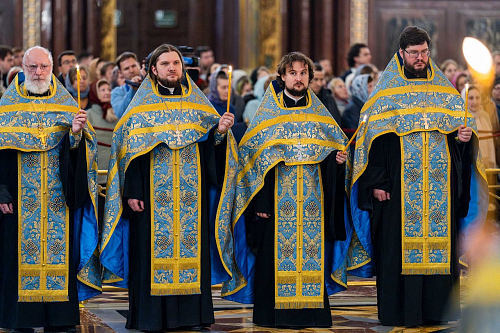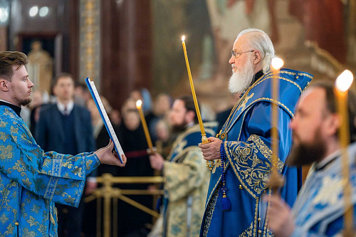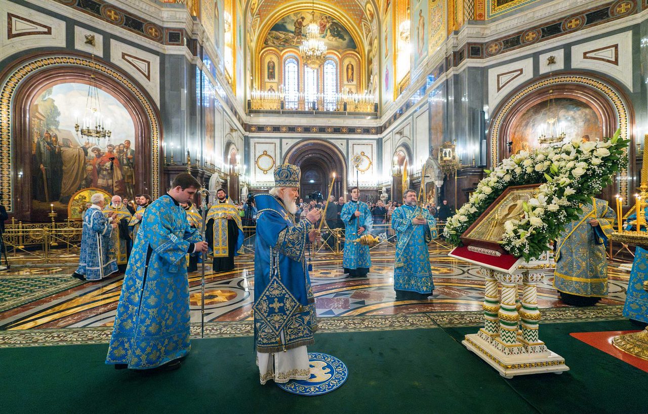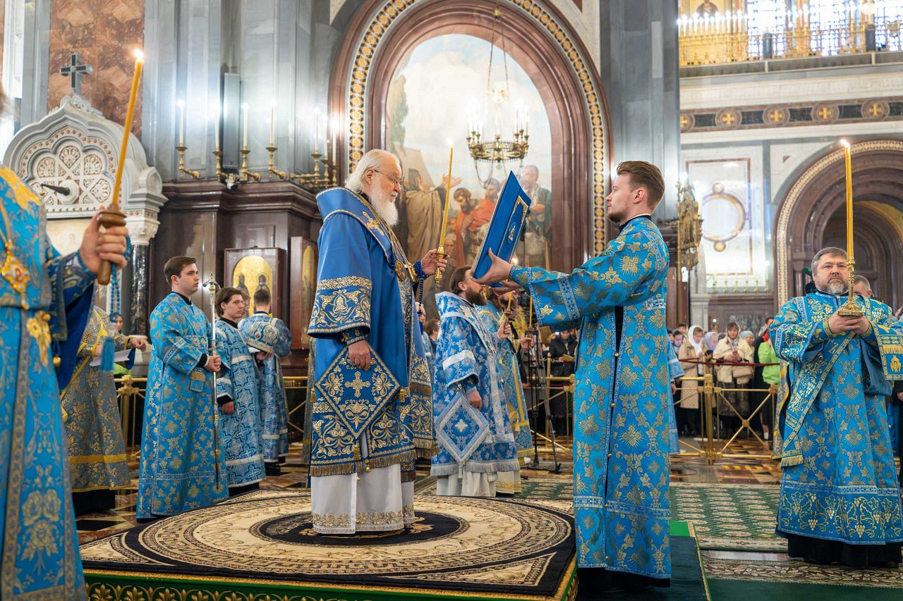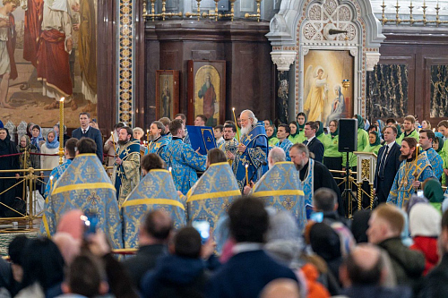 4 апреля 2025 года, накануне субботы 5-й седмицы Великого поста — праздника Похвалы Божией Матери (Субботы Акафиста), Святейший Патриарх Московский и всея Руси Кирилл совершил утреню с чтением акафиста Пресвятой Богородице в кафедральном соборном Храме Христа Спасителя г. Москвы.