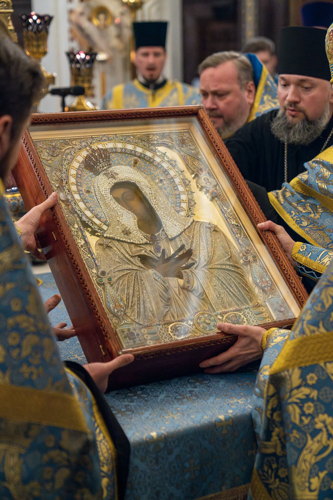По традиции на это богослужение приносится Серафимо-Дивеевская икона Божией Матери «Умиление», келейная икона преподобного Серафима Саровского, которая в течение года хранится в крестовом храме Владимирской иконы Божией Матери Патриаршей резиденции в Чистом переулке в Москве.