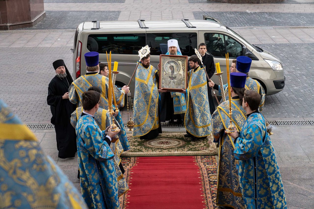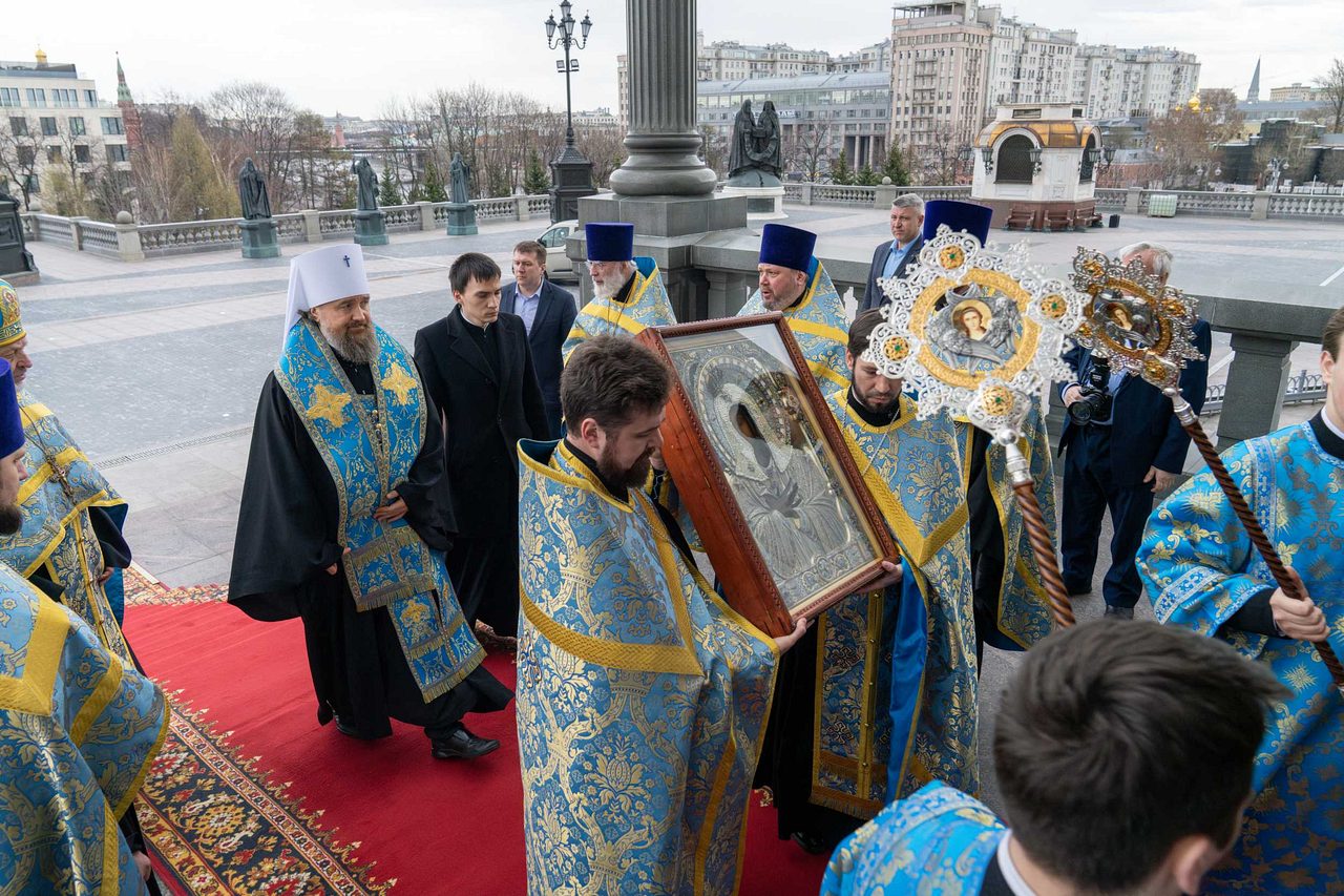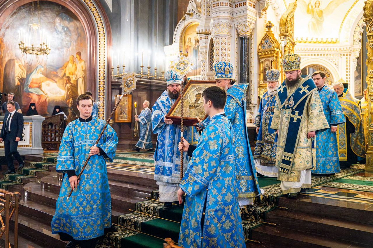 Сегодня по благословению Святейшего Патриарха Кирилла митрополит Воскресенский Григорий, управляющий делами Московской Патриархии, первый викарий Патриарха Московского и всея Руси по городу Москве, перевез чтимый образ в алтарь Храма Христа Спасителя.