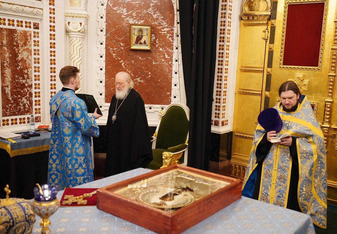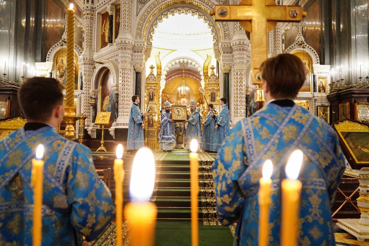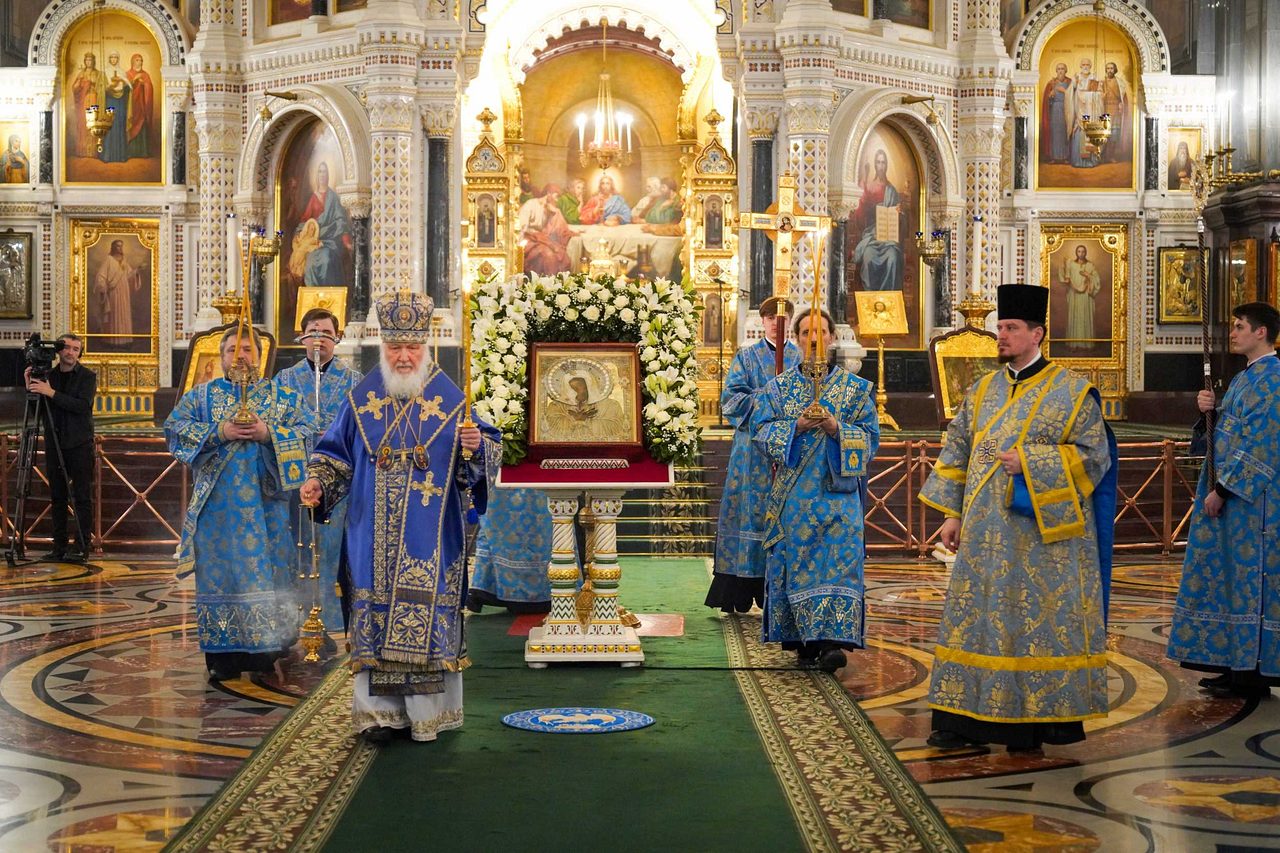 Сегодня по благословению Святейшего Патриарха Кирилла митрополит Воскресенский Григорий, управляющий делами Московской Патриархии, первый викарий Патриарха Московского и всея Руси по городу Москве, перевез чтимый образ в алтарь Храма Христа Спасителя.