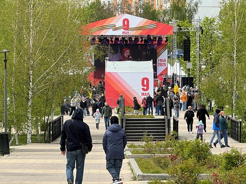 На одной локации начался городской праздничный концерт, который усиливался к вечеру и все больше собирал участников и зрителей, а к вечеру на базе этого концерта состоялся праздничный митинг в честь 80-летия Великой Победы.
