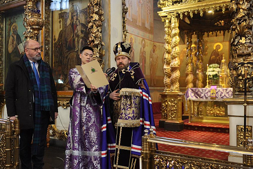 По окончании торжественного молебна председатель ОВЦС огласил поздравление Святейшего Патриарха Московского и всея Руси Кирилла Президенту Греческой Республики с 200-летием начала освободительной борьбы греческого народа.