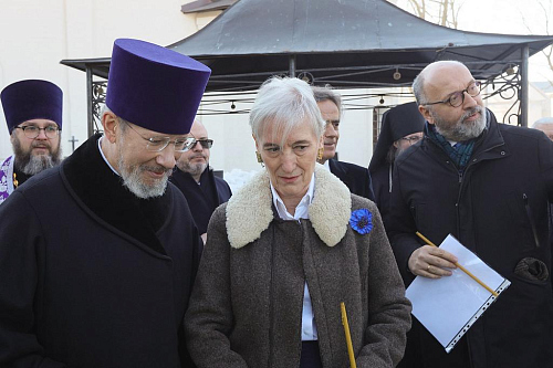 По благословению Святейшего Патриарха Московского и всея Руси Кирилла богослужение возглавил председатель Отдела внешних церковных связей Московского Патриархата митрополит Волоколамский Иларион в сослужении председателя Синодального отдела по монастырям и монашеству, наместника Донского монастыря архиепископа Каширского Феогноста и викария Святейшего Патриарха епископа Дмитровского Феофилакта, а также заместителя председателя ОВЦС протоиерея Николая Балашова, секретаря ОВЦС по межправославным отношениями протоиерея Игоря Якимчука, секретаря ОВЦС по делам дальнего зарубежья протоиерея Сергия Звонарёва.