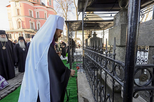 Далее митрополит Волоколамский Иларион совершил литию на месте погребения греков, покоящихся в некрополе Донского монастыря.
