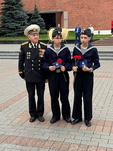 Перед памятной церимонией двум морским кадетам Клуба "Воробьевы горы" Корякину Петру и Узорову Леониду были вручены Знаки "Юный моряк" от ОДПФ, которые они заслужизи выполнив поставленные нормативы.