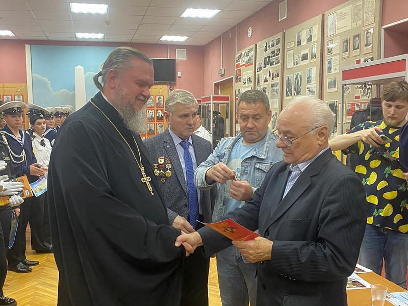 После основного мероприятия Руководитель клуба-музея "Сокольники и Флот" Петр Стефанович Паршиков и Председатель Международного общественного фонда "Командарм" Марк Юрьевич Дейдыш вручил наиболее активным курсантам почетные грамоты и благодарности, а преподавателям, наставникам колледжа, а также активным труженикам на ниве патриотической и воспитательной работы награды. Настоятель игумен Дамиан был удостоен памятного знака "Федор Федорович Ушакова" 2 степени.