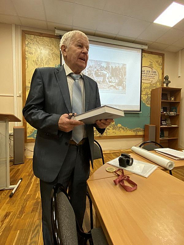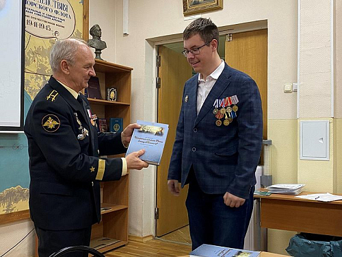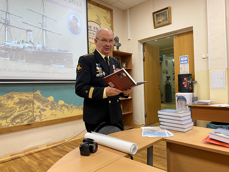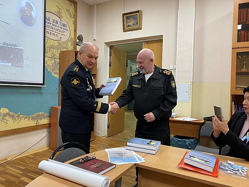 После сообщений состоялась презентация книги А.П. Нахимова «Императорский флот России в эпоху Николая I. Исторические хроники. Книга 1». Автор рассказал о том, что побудило его начать исторические изыскания и продолжать работать дальше, поскольку планируется еще две книги.