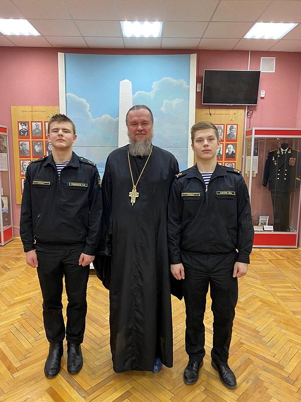Лидия Дмитриевна Кремлёва раздала ребятам Нахимовские ленточки.