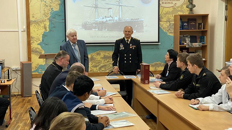 С приветственным словом выступил председатель морской секции Российского дворянского собрания Александр Павлович Нахимов.