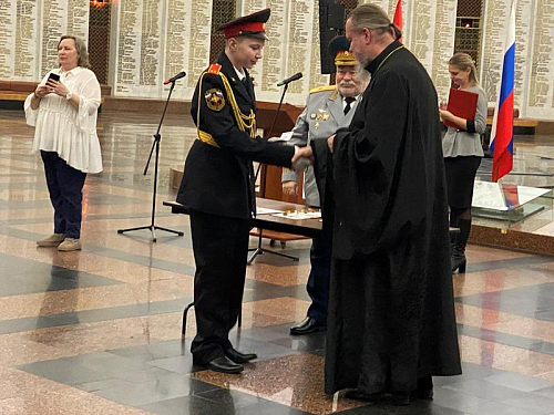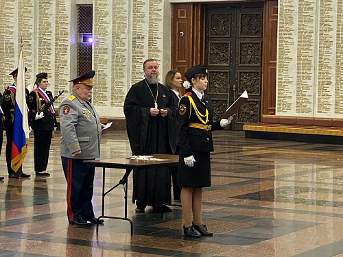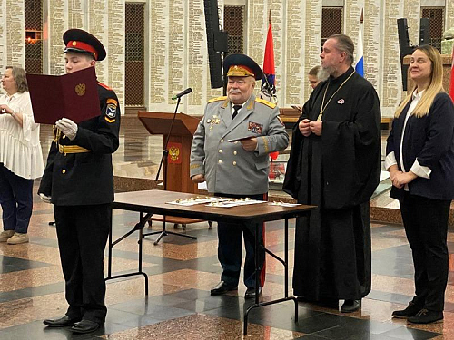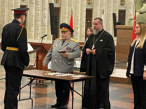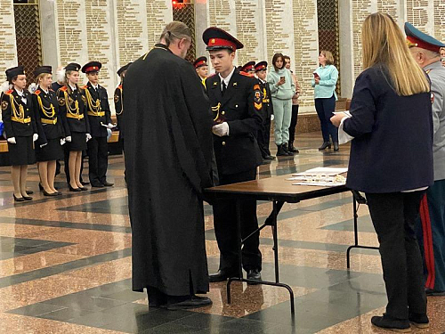 Под руководством педагогов и наставников состоялся прием ребят в число кадетов. Каждый из кадетов произносил слова клятвы. Генерал-майор Тутрин, игумен Дамиан и другие почетные гости вручали им удостоверение и знак кадета.