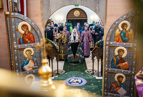 На сугубой ектении были вознесены особые прошения, Предстоятель Русской Церкви прочитал молитву о Святой Руси.