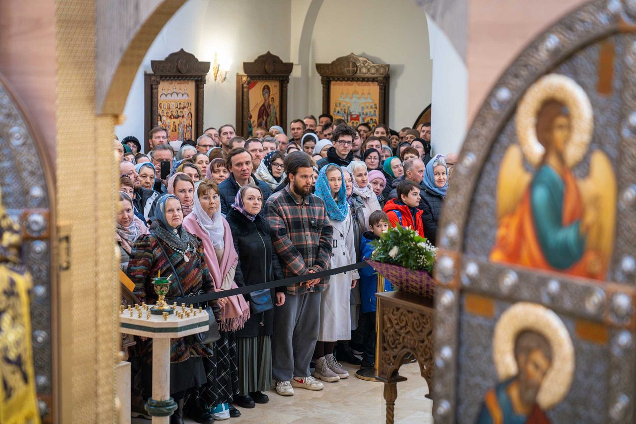 Богослужебные песнопения исполнил мужской хор «Русский Формат» (регент — протодиакон Серафим Дубанов; все певчие хора — участники специальной военной операции, награжденные приказом министром обороны Российской Федерации медалями «За Веру и служение Отечеству» и «Участник СВО»).
