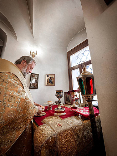 Его Высокопреосвященству сослужили: помощник настоятеля иеромонах Ефрем (Русу), протоиерей Виктор Постика, иерей Николай Кошняну, протодиакон Александр Волков и диакон Василий Голбан.