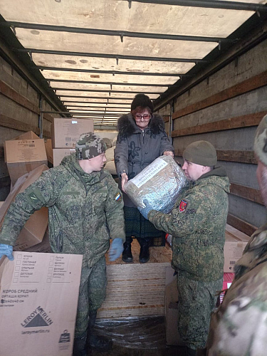 27 декабря состоялись 3 выгрузки гуманитарной помощи. Первую партию гуманитарной помощи отдали о. Александру в Покровском Троицкого района: облачение, свечи, подсвечники. Вторую партию передали танкистам из 1-й танковой армии, которая находится на Купянском участке фронта. Далее волонтеры поехали в Нижние Одуванки, где находится мед-пункт полка 352.