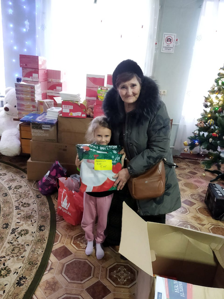 28 декабря гуманитарный груз передали в Детский дом поселка Краснодонский. Дети очень ждали подарков к Новому году, которые купили Оля и Сергей Михайлович. Также ребятам привезли мандарины, конфеты, сладкие подарки, планшеты для рисования, которые принесла многодетная мама Татьяна, и много других подарков.