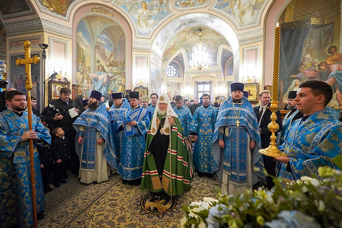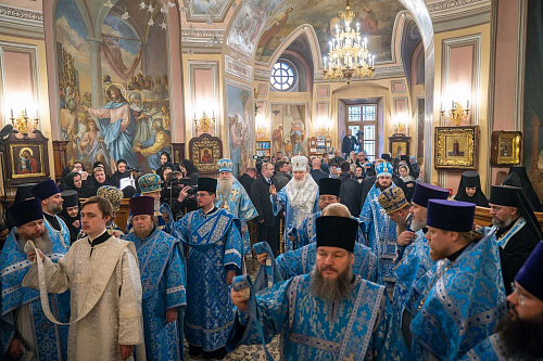 На сугубой ектении были вознесены особые прошения, Предстоятель Русской Церкви прочитал молитву о Святой Руси.