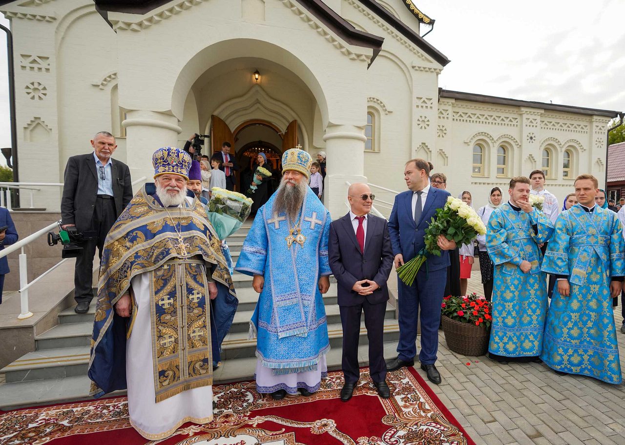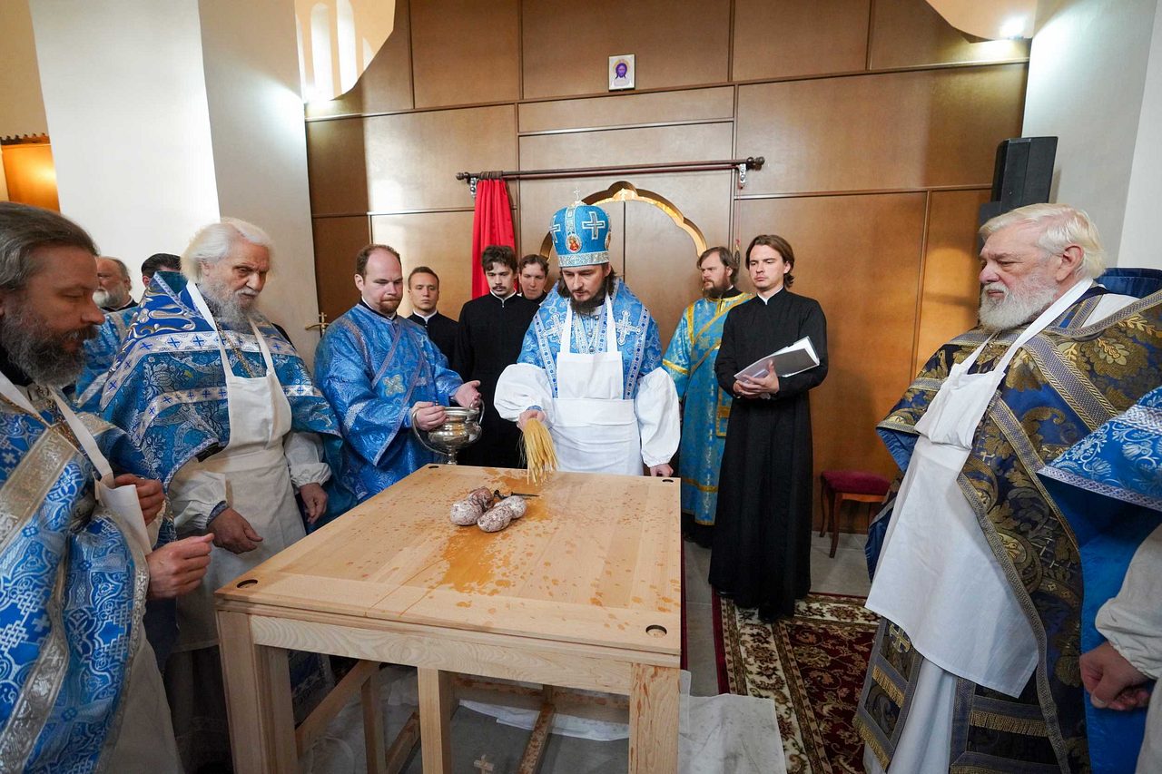 Были освящены два престола: центральный — в честь благоверных князя Петра и княгини Февронии Муромских; южный — в честь преподобных Ксенофонта и супруги его Марии. Также Святейший Владыка освятил 20 антиминсов.
