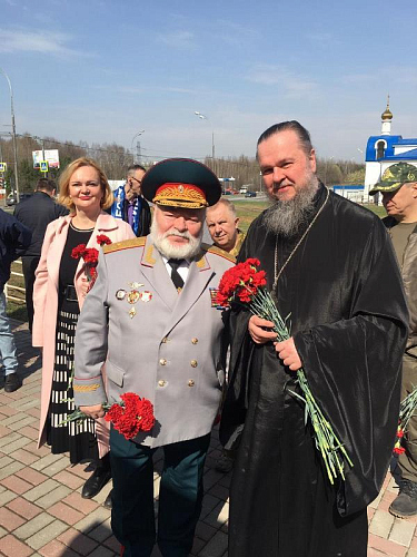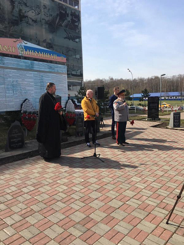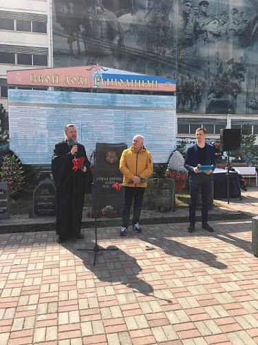 Настоятелем была совершена заупокойная молитва по всем «воинам, живот свой за веру и Отечество положившим» и объявлена минута молчания. Игумен Дамиан обратился к собравшимся со словом о бережном отношении к истории России и памяти наших воинов.