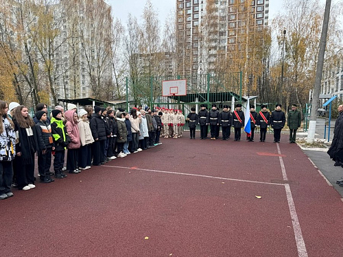 Перед рядами кадетов и гостей был пронесен Государственный флаг России, флаг города Москвы и знамя Юнармии и прозвучал Гимн Российской Федерации.