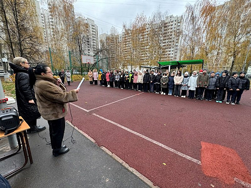 Ведущие праздничной программы прочитали тексты, которые напомнили присутвующим о событиях тех далеких дней, грозных дней Великой Отечественной войны, Битвы за Москву. Школьники прочитали стихи про парад 1941 года и героических воинов, оборонявших столицу.
