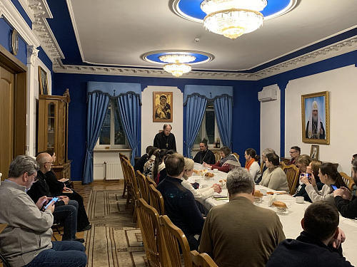 В начале к собравшимся с приветственным словом обратился временно управляющий Юго-Западным викариатством епископ Верейский Пантелеимон , в котором он рассказал о важности освещения событий приходской жизни, интересной , живой, динамичной подаче информации о жизни Церкви, прихода, конкретных людях и преподал архипастырское благословение на дальнейшие труды участникам встречи.