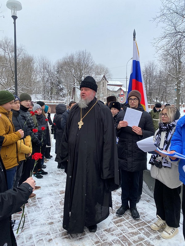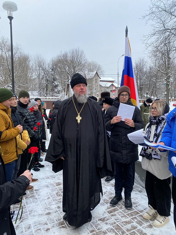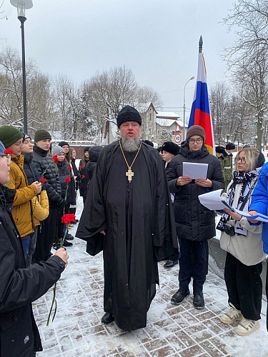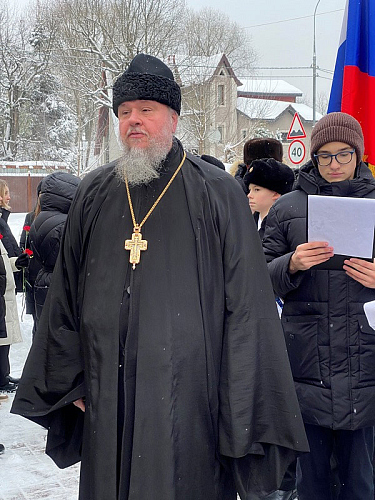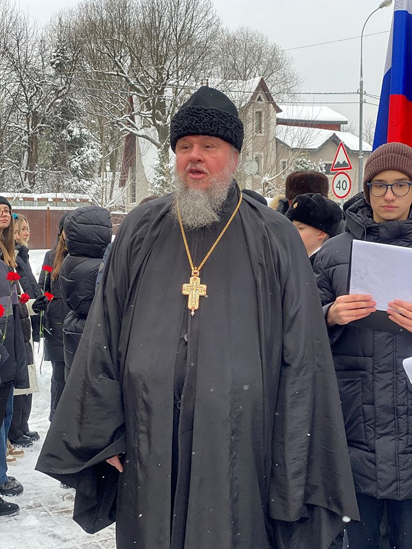 Игумен Дамиан (Залетов), настоятель храма святого праведного воина Феодора Ушакова, почетный житель района Южное Бутово, выступил на митинге, рассказав о важности сохранения исторической памяти, а также выразил слова благодарности всем защитникам Москвы в суровые военные годы.
