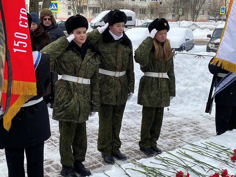 Школьники-кадеты бодро прошли строевым маршем около памятника и гостей.