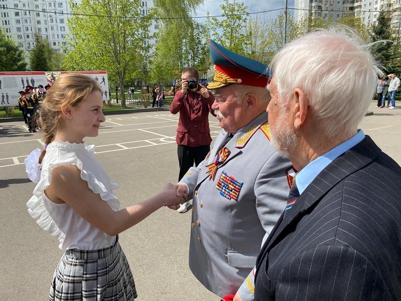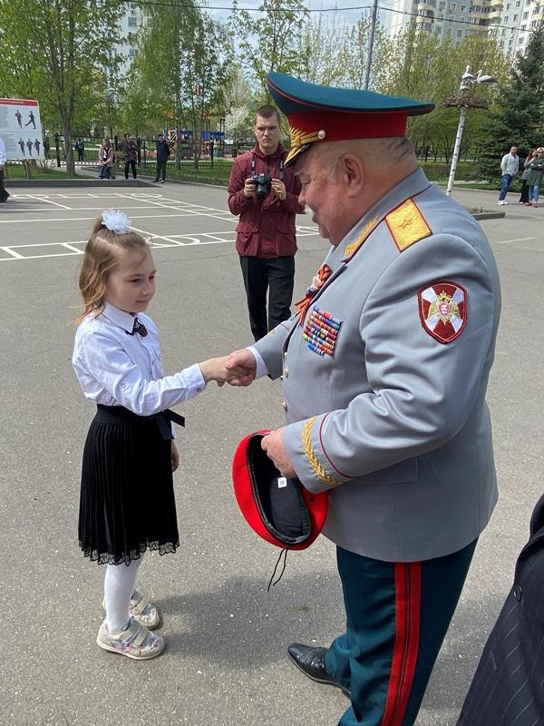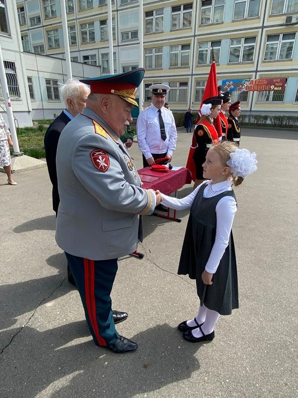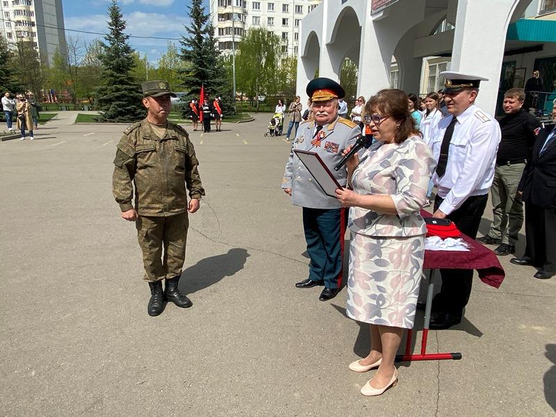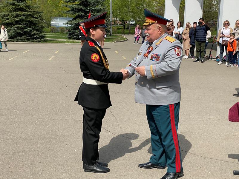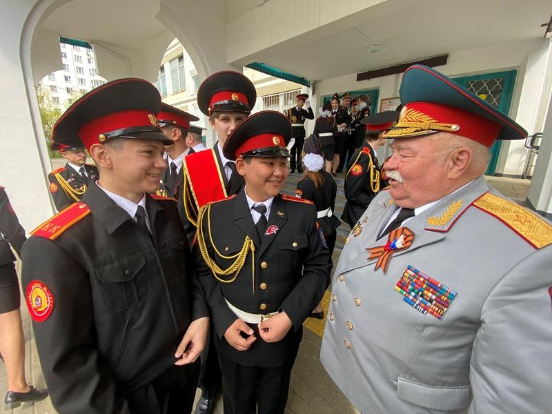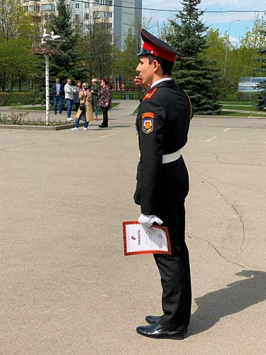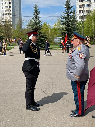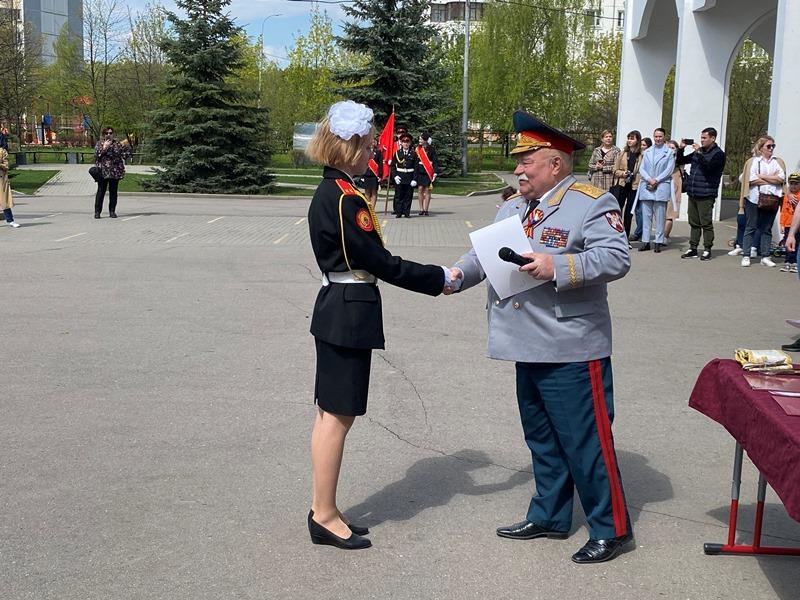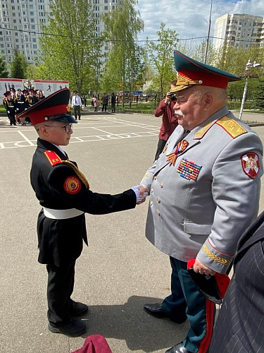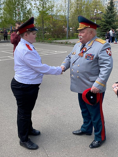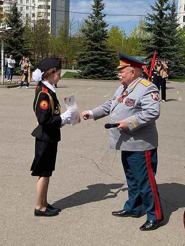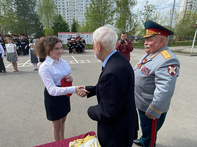 После строевой и музыкальной части Юрий Анатольевич Данченко огласил приказ директора школы 1981 Чермошенцева Александра Викторовича о присвоении некоторым кадетам за отличия и старания очередных кадетских званий, а генерал Николай Николаевич Тутрин вручил отличившимся ребятам погоны и грамоты Совета ветеранов боевых действий, поддержав их добрым словом и напутствием.