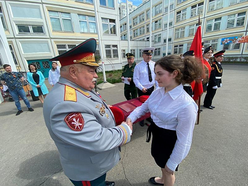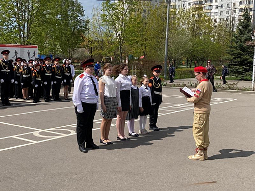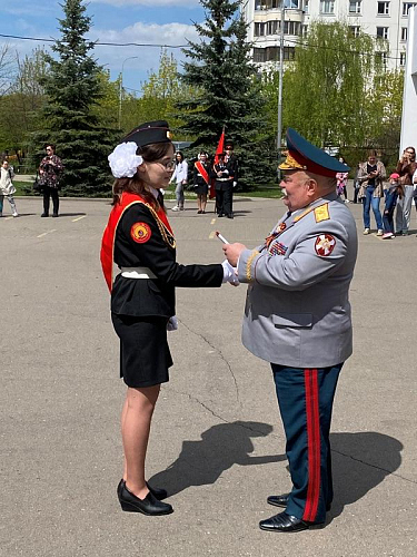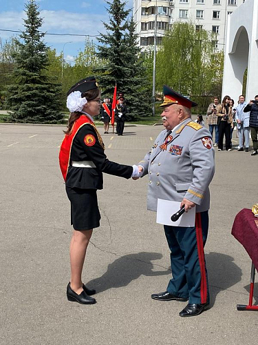 Добрым знаком преемства и развития кадетского и юнармейского движения стал прием в число Юнармии новых ребят. Снова прозвучали слова клятвы Юнармейца! На плацу перед школой новые береты и знаки Юнармии из рук генерала Тутрина и Штафа Рудольфа Леонидовича получил новый отряд школьников.
