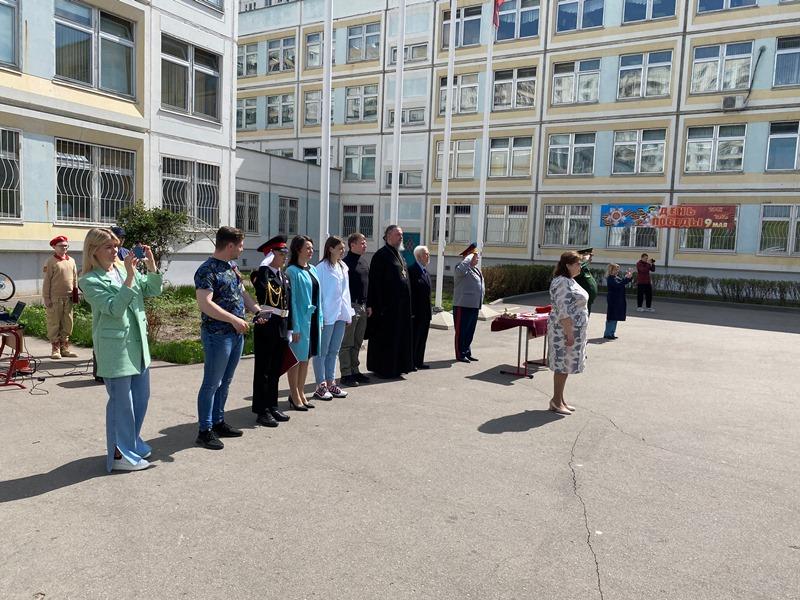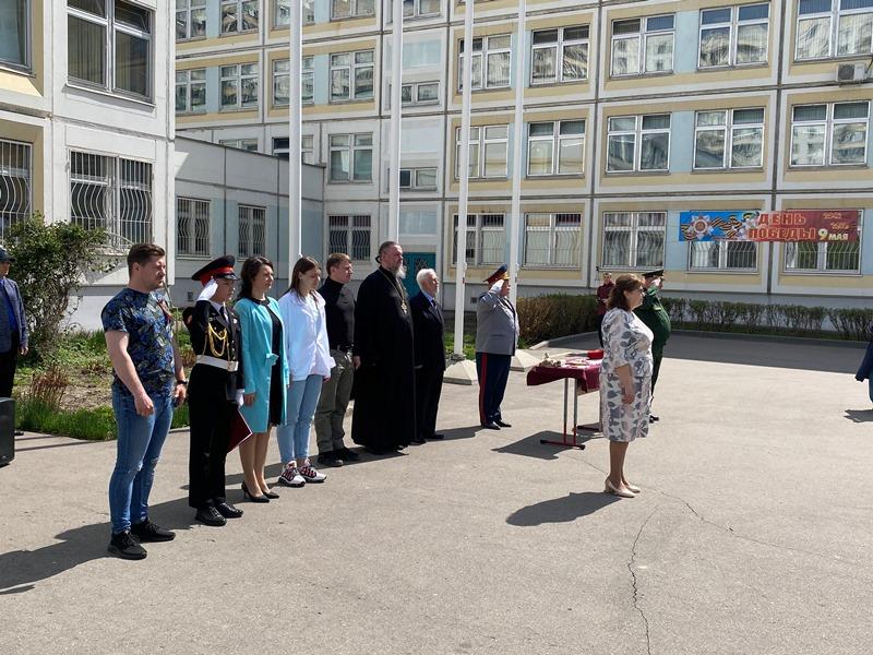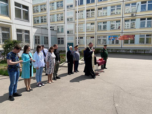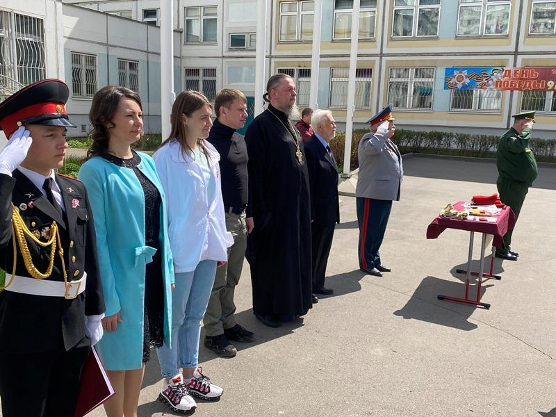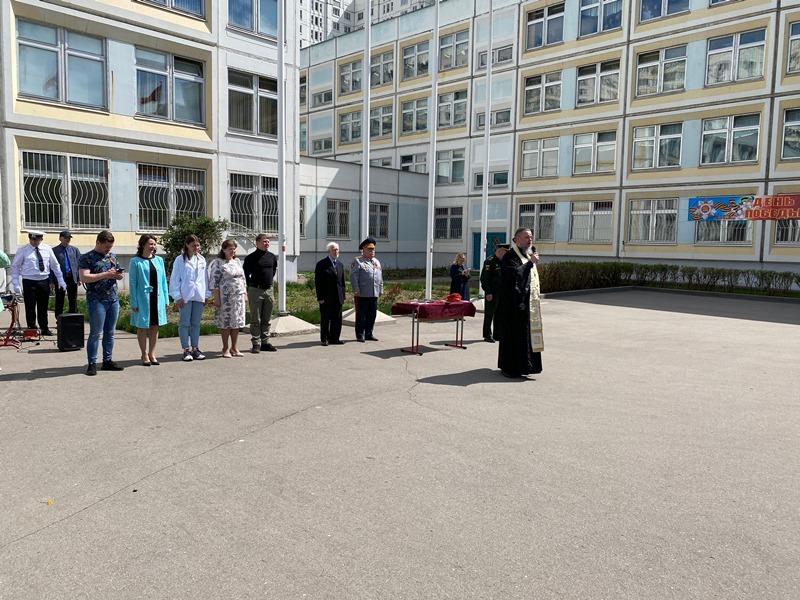 Настоятель храма Святого адмирала игумен Дамиан окропил кадетов и наставников Святой водой. После этого игумен Дамиан также поприветствовал ребят и пожелал им быть сильными духом и верой, приведя в пример непобедимого адмирала флота Российского, святого праведного воина Феодора Ушакова. Отдельные слова благодарности прозвучали от настоятеля в адрес заместителя директора, руководителя структурного подразделения, Максюты Надежды Ивановны, учителей и родителей. Также настоятель передал всем привет и благопожелания от ветерана Великой Отечественной войны, почетного жителя района Валентины Владимировны Бояршиновой, Героя России, летчика-космонавта, депутата Госдумы, Романенко Романа Юрьевича и депутата Мосгордумы Людмилы Ивановны Гусевой.
