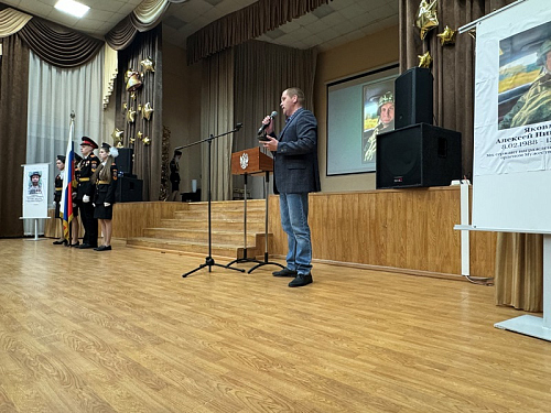 Сначала все участники собрались в актовом зале школы. Были внесены Знамена России и города Москвы. Прозвучал Гимн России. Был открыт памятный митинг, где родные и друзья погибших героев поделились своими воспоминаниями о них.