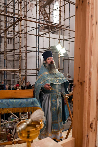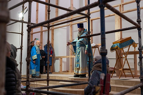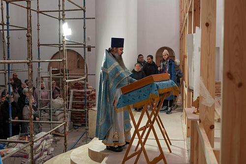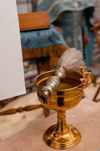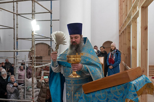 по окончании которого поблагодарил прихожан за совместную молитву и поздравил с совершением первого молебна в новом храме. В завершение иерей Иоанн окропил всех собравшихся святой водой.