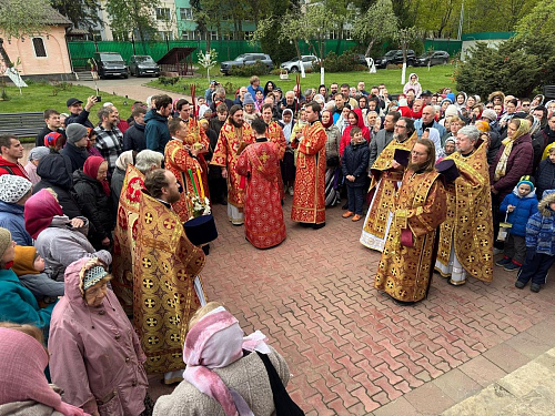 По окончании Божественной литургии епископ Алексий возглавил крестный ход. По его завершении управляющий Юго-Западным викариатством освятил крест, воздвигнутый в память о почивших священнослужителях храма святых Бориса и Глеба в Зюзине, а также прочитал молитву на раздробление Артоса.