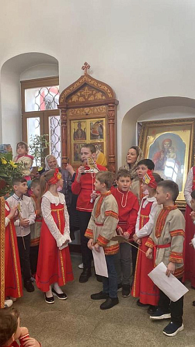 Начался он с поздравления воспитанниками Воскресной школы прихожан со Светлым Христовым Воскресением.