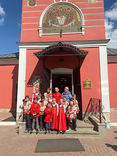 После праздничного Крестного хода по окончании поздней Божественной Литургии, в котором дети приняли непосредственное участие, неся святые иконы, в храме учащиеся представили литературно-музыкальную композицию.