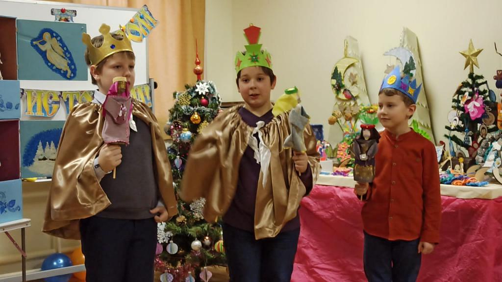 Праздник был открыт пением тропаря Рождеству Христову. Затем начался спектакль Вертепного театра. После спектакля состоялся концерт. С сольными номерами выступили учащиеся школы. Хором были исполнены несколько Рождественских песен.
