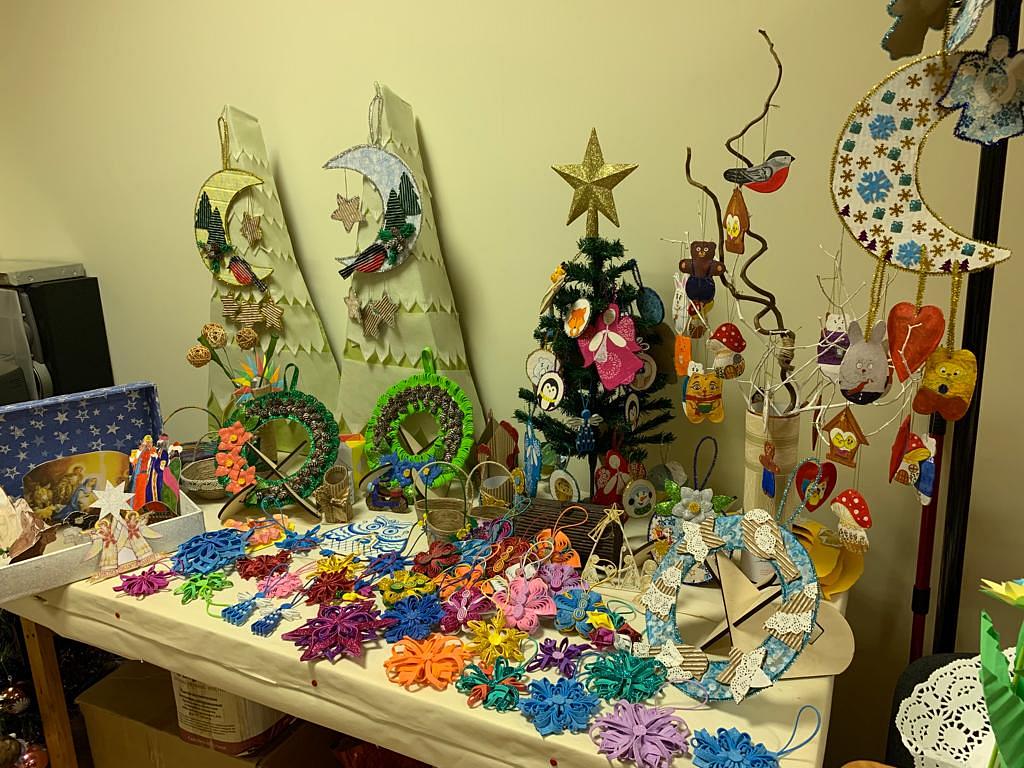 В зале была устроена выставка творческих поделок учащихся Воскресной школы.